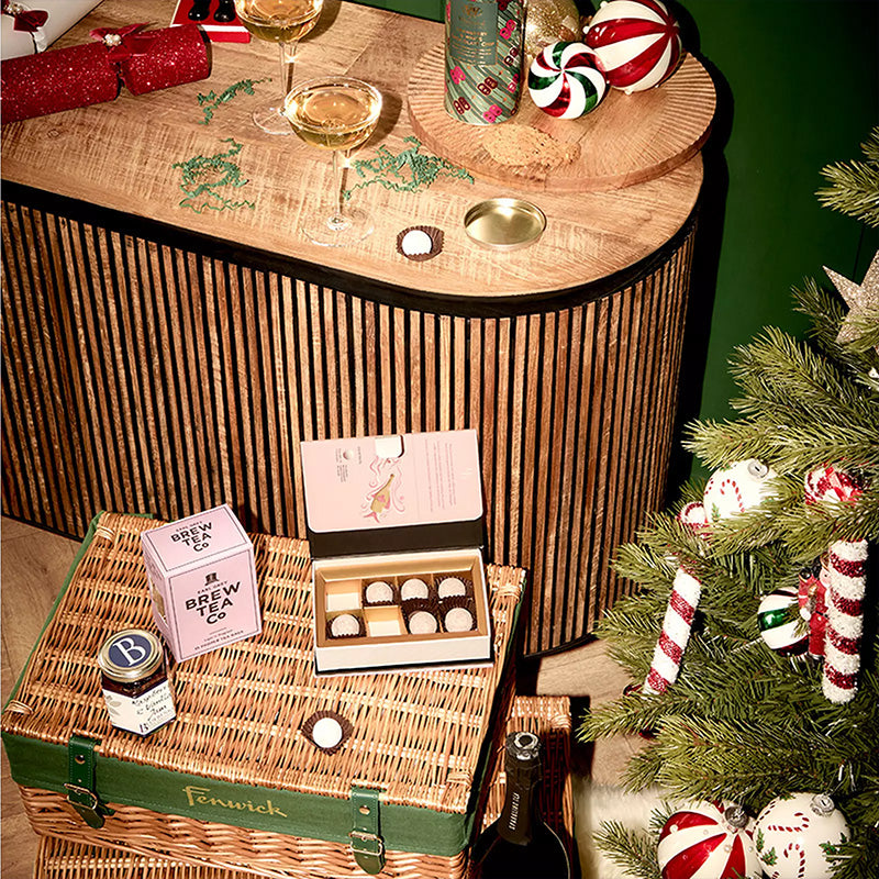 Packed with festive favourites from the Fenwick Food Hall, our foodie hamper is a surefire way to delight family and family who deserve a treat. From melt-in-your-mouth mince pies to rich Christmas pudding and zingy Boxing Day chutney, it's Christmas cheer in every bite. Perfect for spreading joy faster than you can say "pass the crackers".