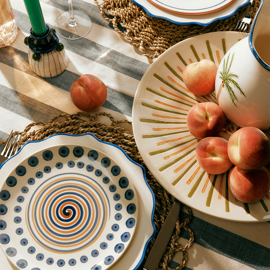 Whether hosting a sun-drenched lunch or tasting golden hour, summertime calls for outdoor dining done beautifully. Think statement tablecloths that set the tone, decorative placemats that bring texture and charm, and handcrafted dinnerware that turns every course into a moment of delight. From first pour to final plate, discover thoughtful details that elevate your alfresco table.