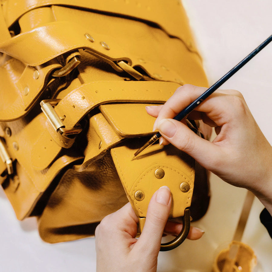 Based at The Rookery, one of Mulberry's Somerset manufacturing homes, their Repairs Team includes some of their most highly skilled artisans. They renew, restore and repair over 12,000 bags annually, maintaining an archive of materials and hardware spanning over 35 years. Each project receives meticulous care and attention, ensuring bags can be passed on for another lifetime of use.