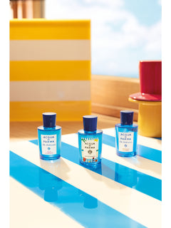 Inspired by the timeless island of Panarea, the limited-edition Blu Mediterraneo Mirto di Panarea captures the essence of the Mediterranean’s wild beauty. This fragrance blends sparkling citrus with aromatic myrtle and fresh juniper, evoking the volcanic landscape and sea breeze. The label, designed by Ben Arpea, depicts a sunlit lunch on Panarea with blue and white stripes, reflecting a vibrant summer atmosphere. Hints of basil, jasmine, and rose add calm and harmony. Presented in the iconic deep blue Acqua di Parma bottle, this scent celebrates the warmth and spirit of Italian coastal landscapes.