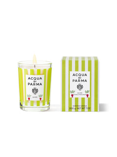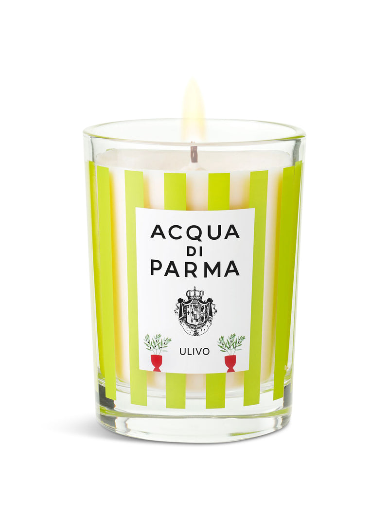 Presented in a green and white striped jar crafted by Ben Arpea, the limited edition Ulivo Candle captures the serene essence of a perfect summer. Inspired by the tranquil Italian countryside, its design reflects the soothing hues of olive trees. The fragrance begins with a lively burst of blackcurrant absolute, followed by a warm, earthy olive wood accord at its core. The base blends labdanum absolute with cedarwood and fir balsam for a rich finish. Measures 10 cm high and 7.7 cm in diameter, weighing 200g, with a burn time of up to 50 hours.
