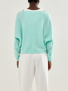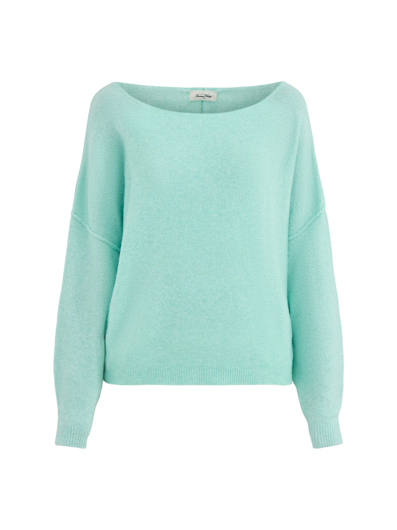 The Damsville Wool Jumper by American Vintage features a soft brushed texture and a relaxed silhouette. In pale blue, it embodies everyday ease — a great companion for jeans, trousers or skirts alike.