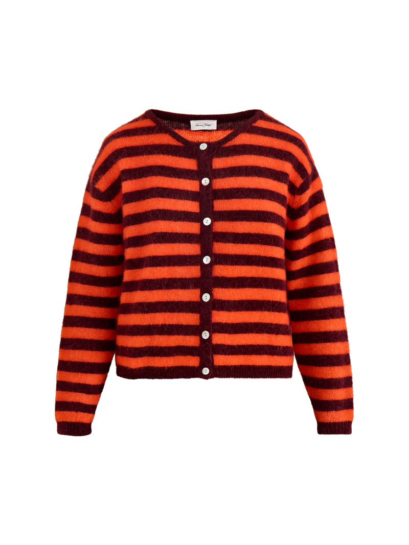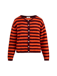 The Vitow Wool Cardigan by American Vintage is knitted from a soft wool blend with tonal red stripes. Designed for relaxed layering, it drapes effortlessly over shirts or dresses, adding warmth and subtle colour to everyday styling.