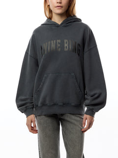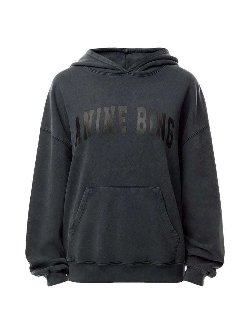 The Harvey Sweatshirt is an oversized hoodie made from midweight 100% cotton fleece. It features an ANINE BING Sport graphic at the chest in tonal collegiate lettering and subtle grinding along the edges of its hood, sleeve cuffs, and waistband for a vintage look. Includes a functional front kangaroo pocket.
