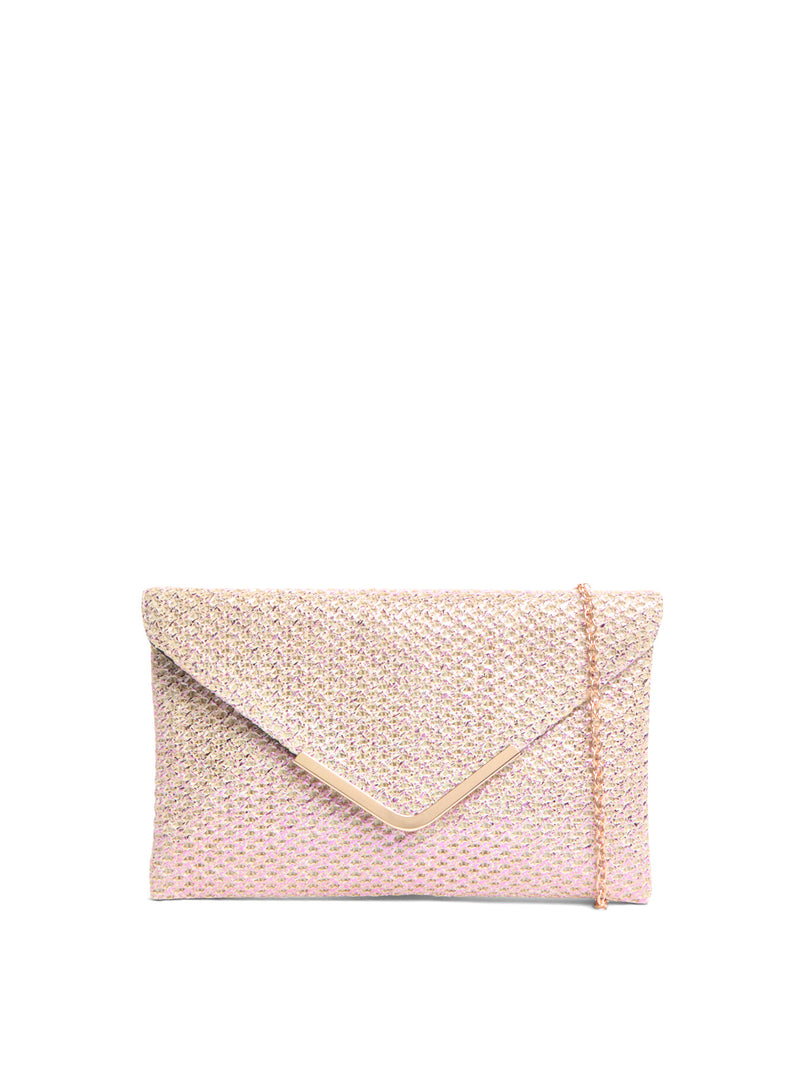 Rose GoldRose Gold Raffia Envelope Metallic Clutch with chain
