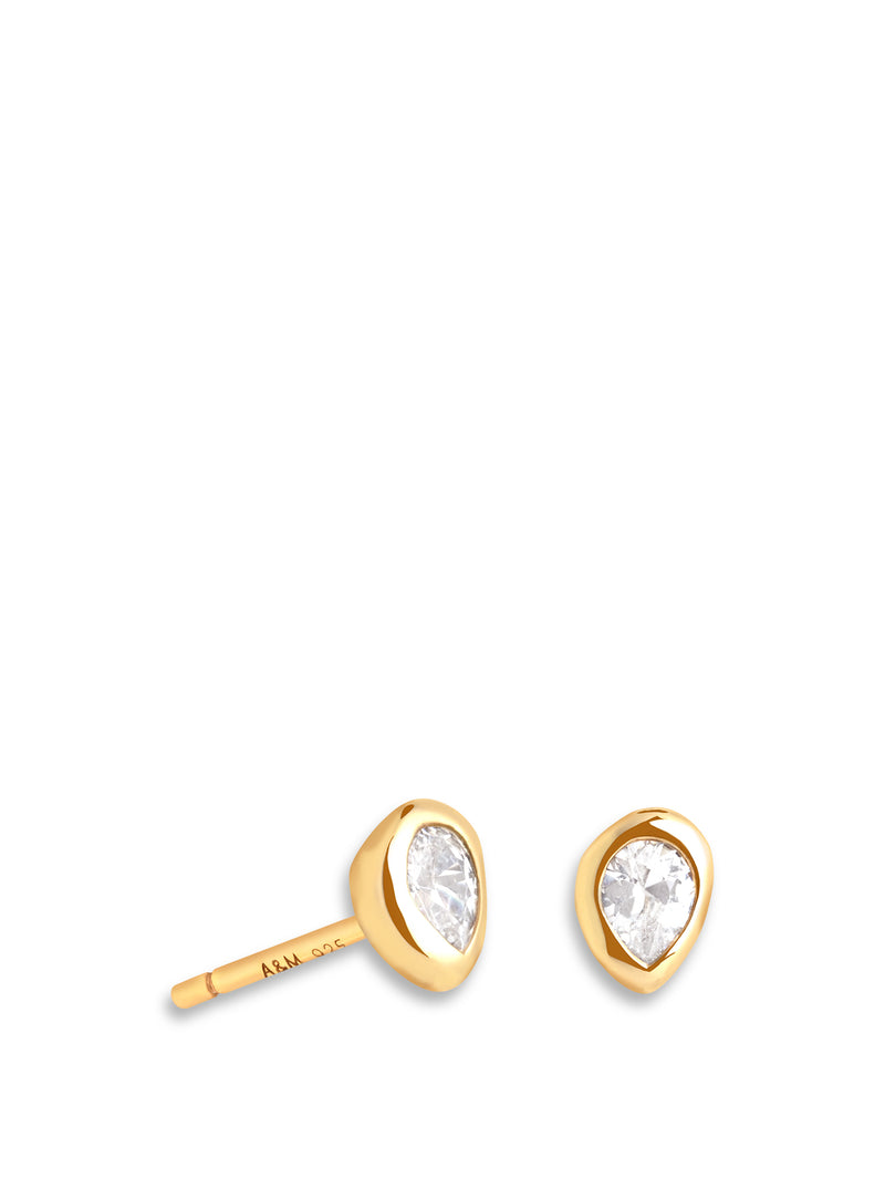 Gold Pear Bezel Earring Studs