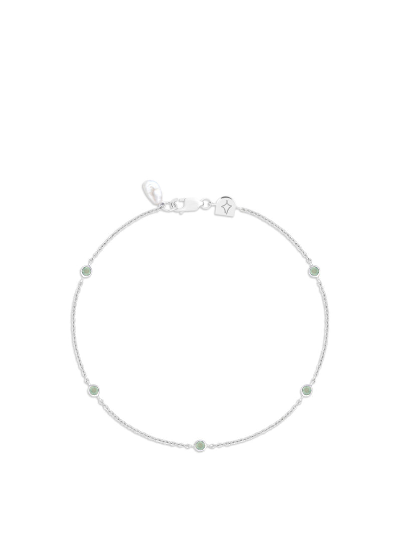 Green/SilverGreen/Silver Stone and Pearl Charm Bracelet