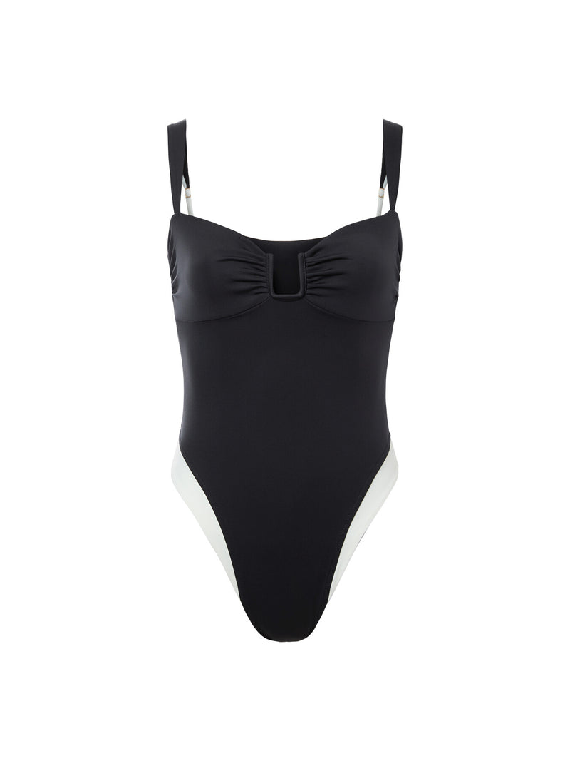 Inspired by the classic 90's - This figure-flattering design is made with ultra-soft PYRATEX® Active 1, innovated with biodegradable elastane. It also features a balconette aesthetic and an exclusive two-tone colourway, boasting a timeless look with medium coverage at the back. Complete with fully adjustable straps and a high-cut leg, perfected to wear as a swimsuit or bodysuit.