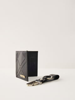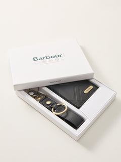 Barbour Brunton Leather Gift Set Black Tartan Emboss