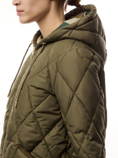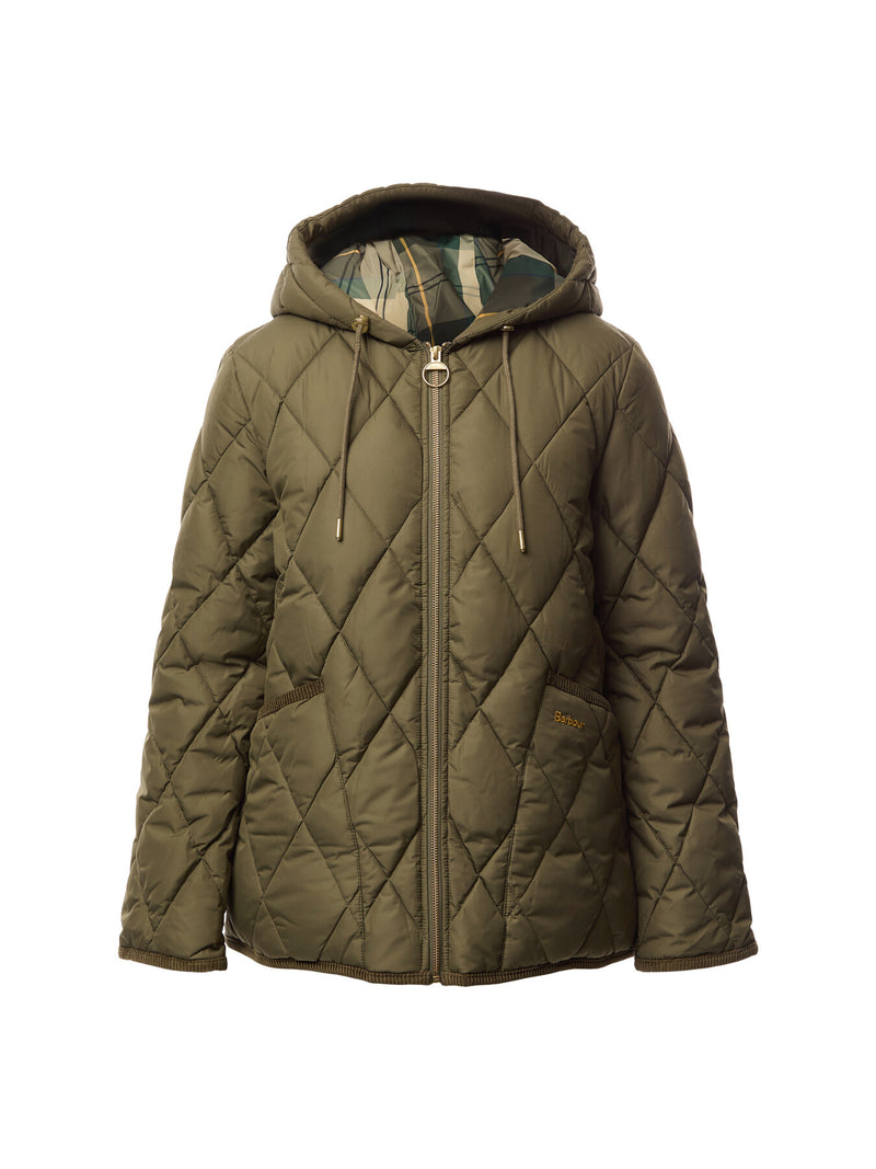 Wrap up in style with the women's Barbour Erin Puffer Jacket. This short, 4-inch diamond-quilted jacket boasts a relaxed fit, perfect for adding warmth without sacrificing style. The tartan-lined hood adds a classic touch, while the zip fastening ensures easy wearability. Oversized Liddesdale pockets provide ample storage while enhancing the jacket's practicality.