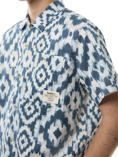 The perfect statement shirt, the men's Barbour Homelane Printed Shirt is the perfect addition to your wardrobe. This short sleeve shirt features a printed twill cotton fabric with a geometric design. The relaxed fit is perfect for the warmer days along with the soft cotton fit . The shirt is complete with a revered collar and mock horn buttons for added interest.