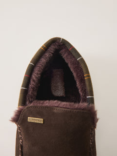 The Monty Suede Slippers by Barbour are crafted in rich brown suede with a soft faux-fur lining for lasting comfort. Designed with moccasin-inspired stitching and a rubber sole, they’re ideal for wearing around the house or stepping out to the garden. Finished with signature Barbour tartan trim, they bring a touch of British heritage to off-duty downtime.