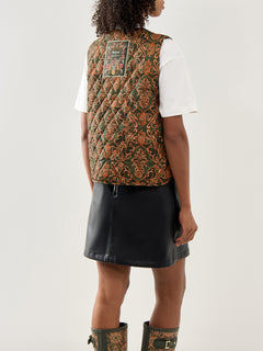 The Barbour X Farm Rio Fernanda Liner features a vibrant Pineapple and Green Heart print made from recycled polyester, combining eye-catching design with eco-friendly materials. This lightweight liner offers versatile layering options, perfect for adding warmth and style to your outfit while supporting sustainable fashion.