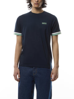 Deep Cuff Evan Tipped T Shirt is a soft and comfortable layer crafted from 100% cotton. This classic short sleeve t-shirt is easy to build an outfit around, with contrast flat knit cuffs adding interest to the design and a subtle contrast branded print to the chest as a premium finishing touch.