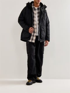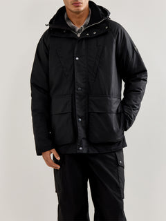 The Oakdale Wax Jacket by Barbour International is crafted from heavyweight waxed cotton with a matte finish. Reinforced seams, a storm flap, and quilted lining nod to Barbour’s motorcycle legacy, merging rugged durability with refined design.