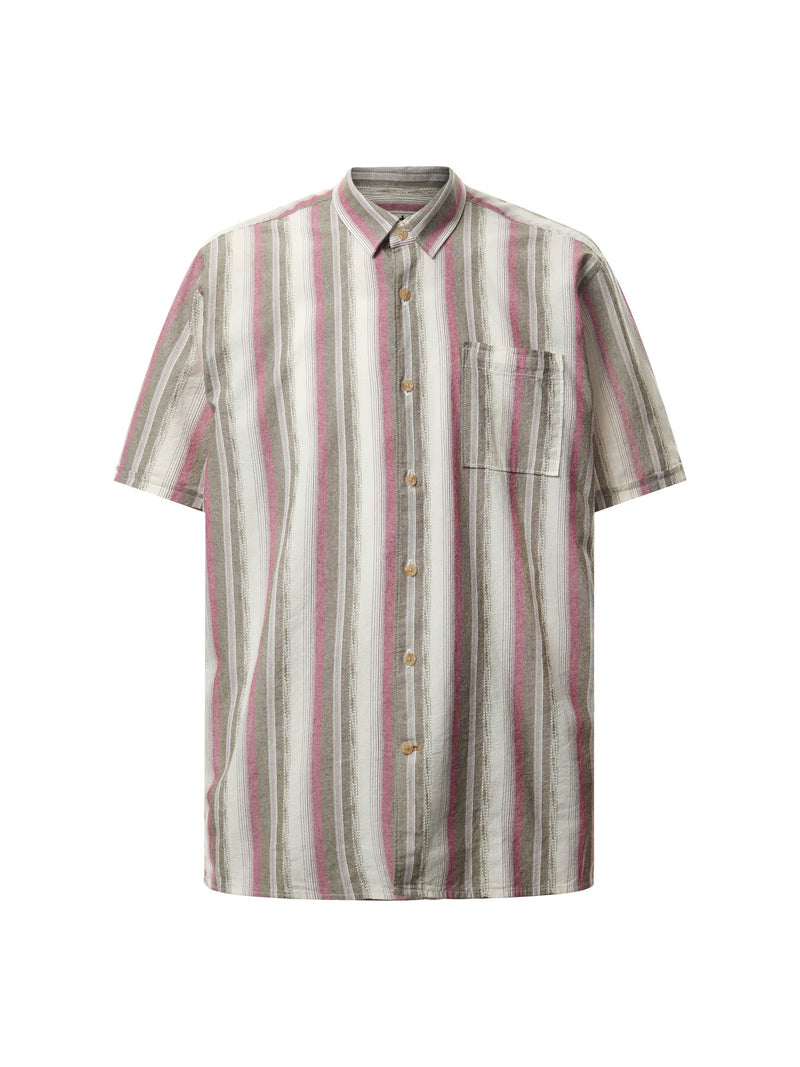 Step out in a vintage summer look with the men's Barbour Lipton Striped Shirt. This short sleeve shirt is presented in a relaxed summer fit to keep you cool and comfortable, assisted by the soft cotton fabric. The irregular vertical stripe design combines with the mock horn buttons to make this shirt a visually interesting wardrobe staple.