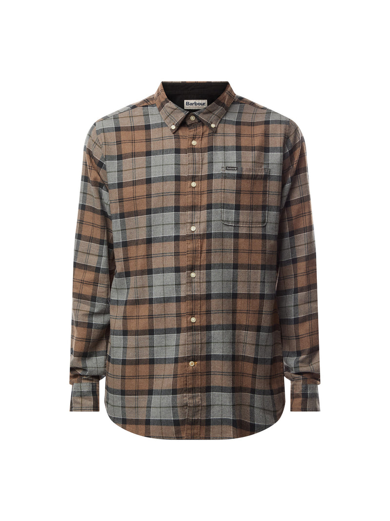 Made from 100% cotton for soft and comfortable wear, the shirt carries a mid-scale tartan print and is finished with a button-down collar and subtle Barbour branding to the chest pocket.
