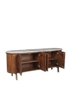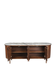 Brown Cresta Marble 4 Door Sideboard with Acacia Wood Base