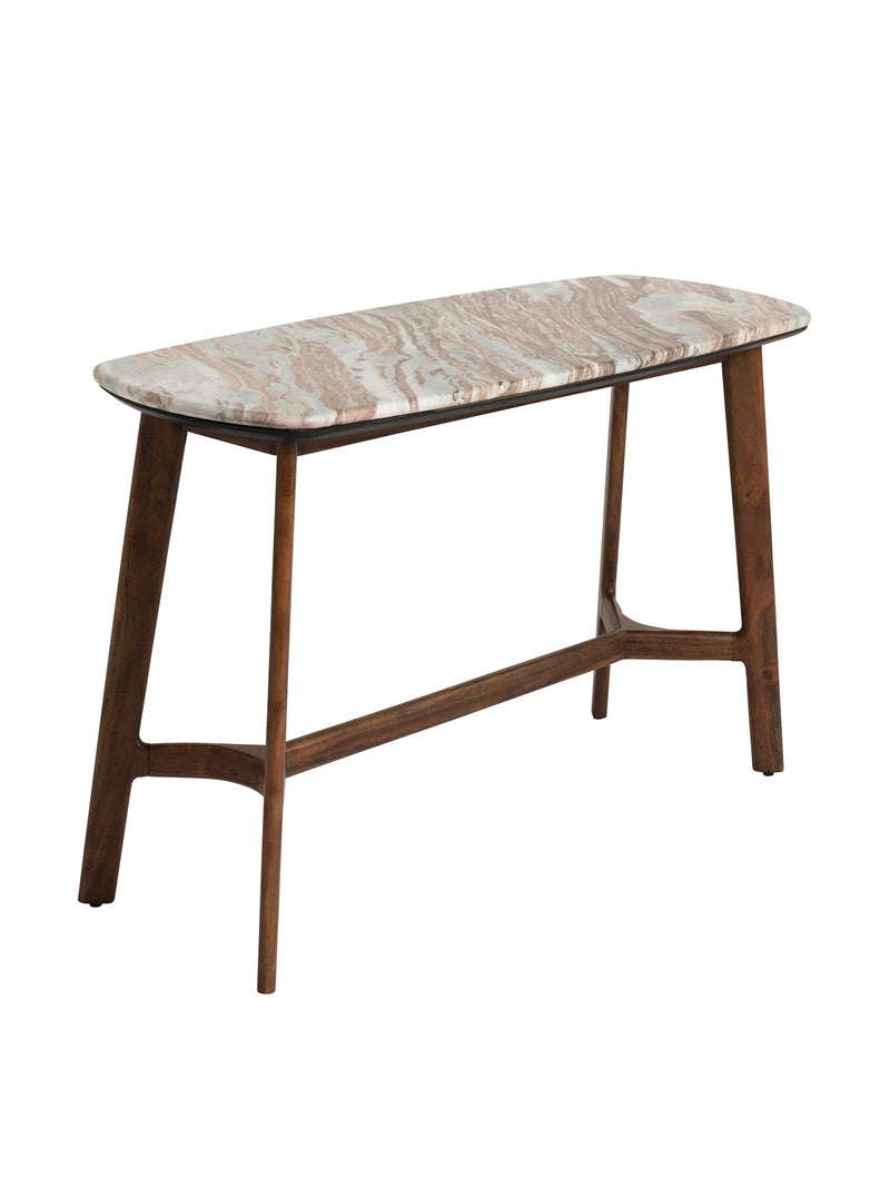 Brown Cresta Marble Console Table With Acacia Wood Base