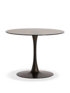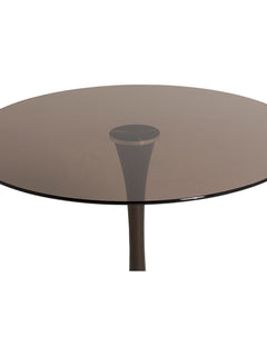 Brown Rumi Round Smoked Tempered Glass and Bronze Metal Base