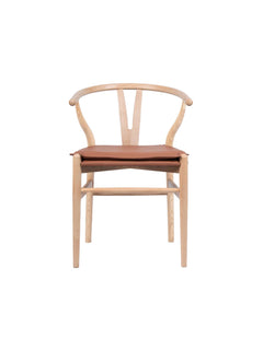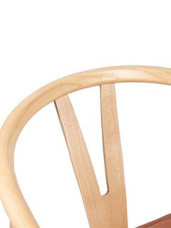 Thoren Ash Wood Open Back Dining Chair with Brown Faux Leather Seat