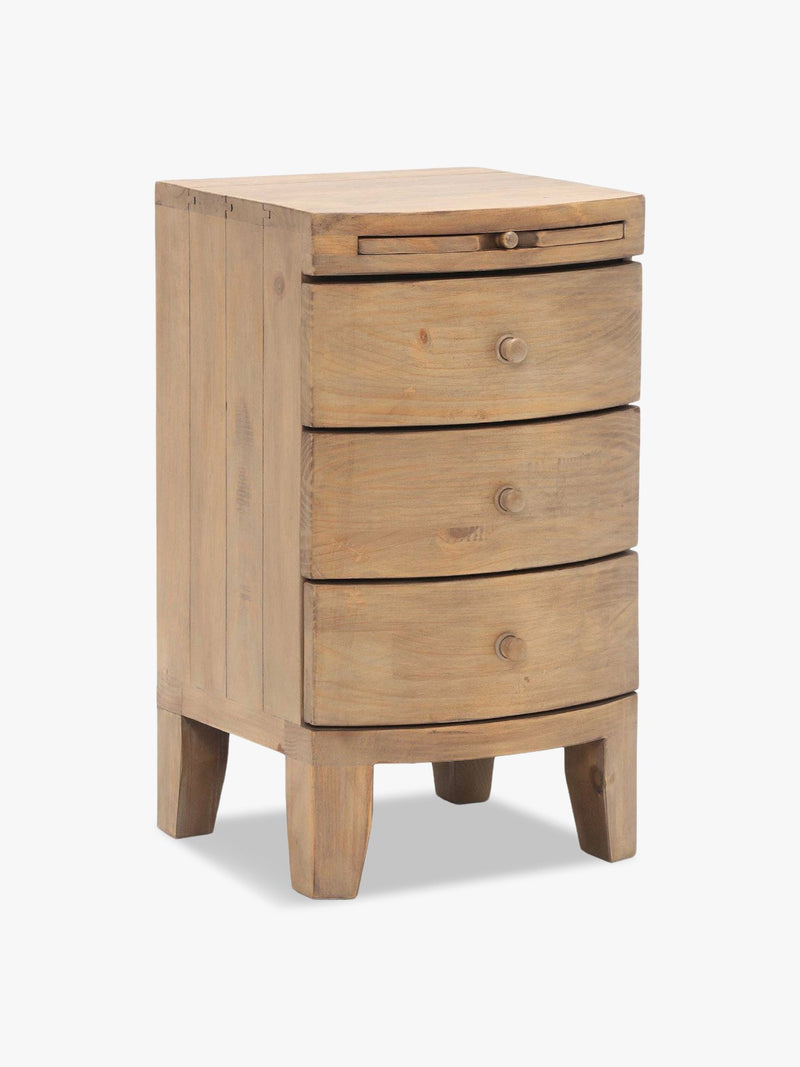 Lewes Reclaimed Wood 3 Drawer Bedside, Wheat