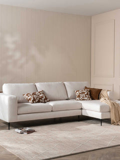 Sienna Boucle Fabric Right Hand Chaise Sofa With Steel Legs
