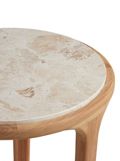 Terza Teak Wood Round Side Table with Marble Top Neutral