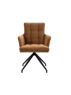 Odine Orange Velvet Swivel Stitched Dining Chair with High Arms
