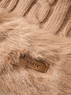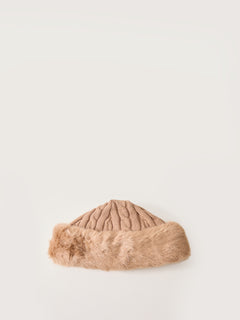 Faux Fur Cable Knit Hat Light Brown