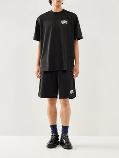 These black woven shorts, crafted from polyester, feature a drawstring waist that offers a customisable fit. The mesh lining boosts breathability and comfort, while a subtle logo print at the hem adds a refined touch. Suitable for casual wear or active occasions, these shorts combine functionality with style.