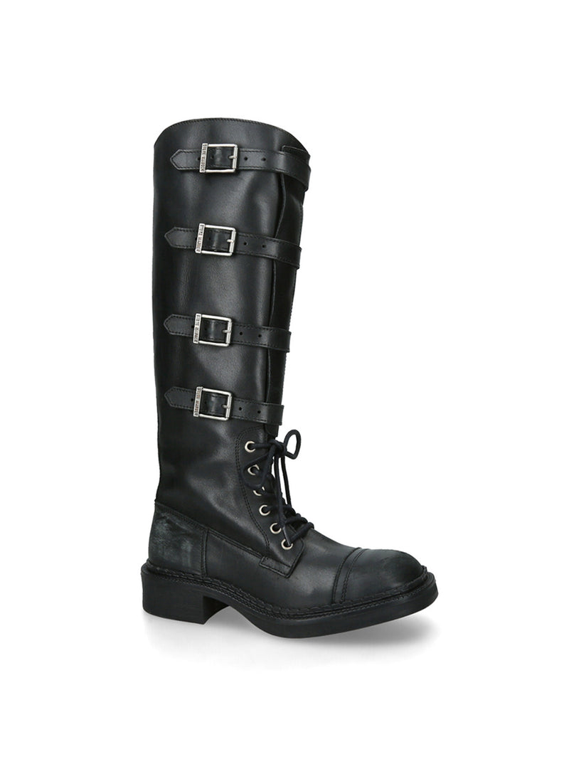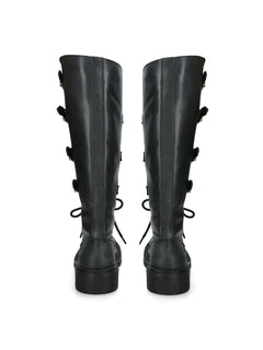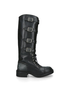 Rox Buckle Leather Boots Black