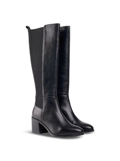 The SOLE Gillie Elasticated Knee High Boots feature a leather construction with a sturdy block heel. Designed for both style and comfort, these boots provide a sleek silhouette and reliable support, making them a versatile addition to any wardrobe.