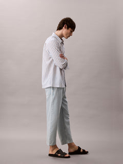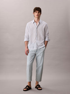 The High Rise Cropped Tapered Jeans in Blue by Calvin Klein feature a flattering high waist with a tapered cropped leg. With a clean finish, they add structure to denim edits. Jeans crafted for everyday styling.