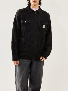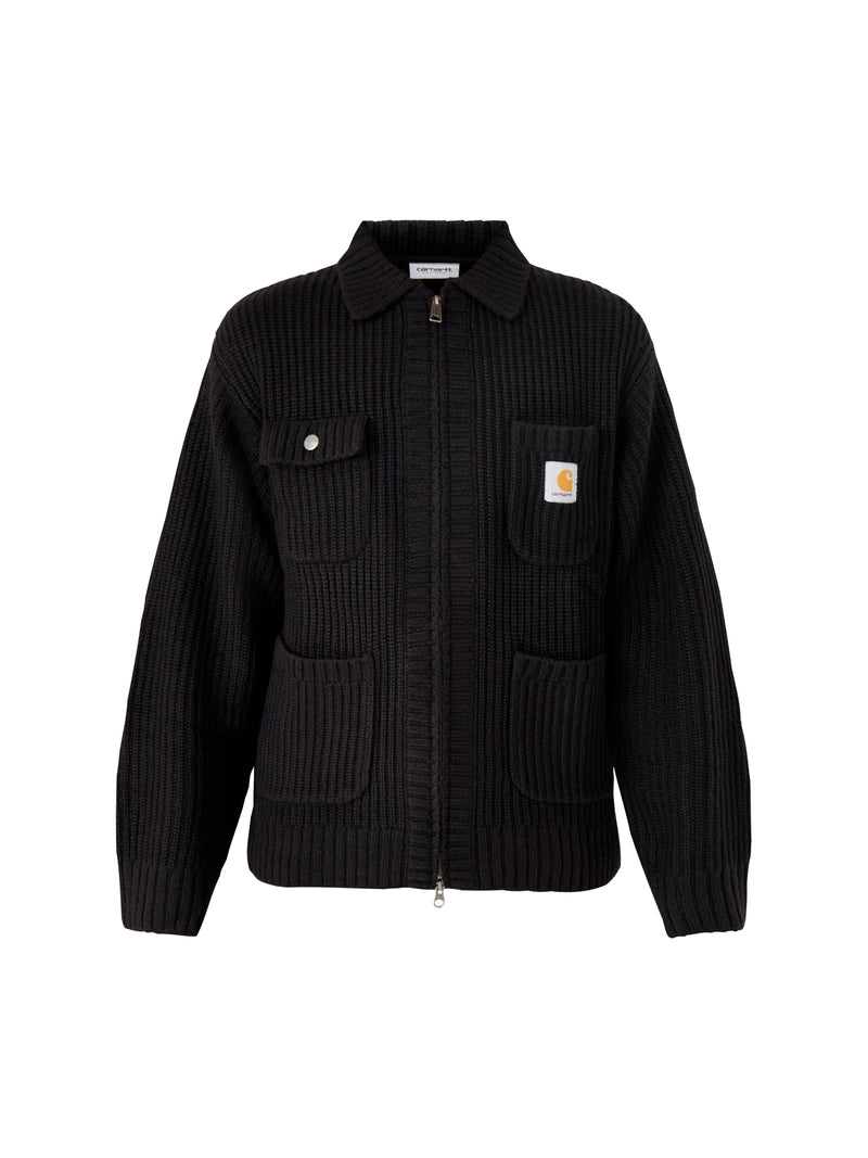 Carhartt WIP reworks utilitarian roots into a knitted interpretation of the chore jacket. Patch pockets deliver function, while the rib structure adds warmth and flexibility — an elevated twist on a heritage style.
