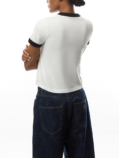 The Women's S/S I'll Be There T-Shirt is made in a slim fit from a lightweight cotton jersey, featuring contrast ribbing at the cuffs and collar. Graphic prints appear on the front.
