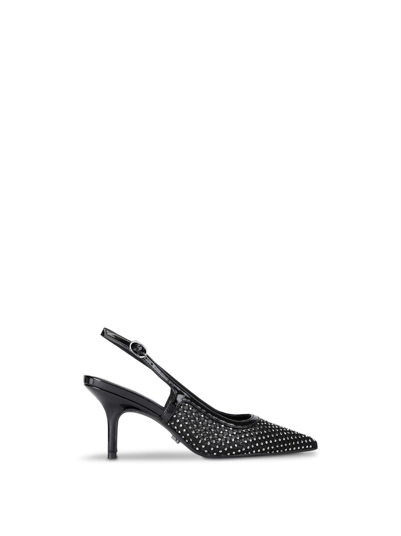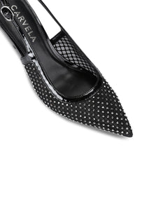 The Lavish Jewel Slingback Heel features a delicate mesh pointed toe adorned with sparkling crystal embellishments, adding a touch of elegance to any outfit. Its slingback ankle strap ensures a secure and comfortable fit, making it ideal for both special occasions and stylish everyday wear. This heel combines sophisticated design with practical support for a refined look.