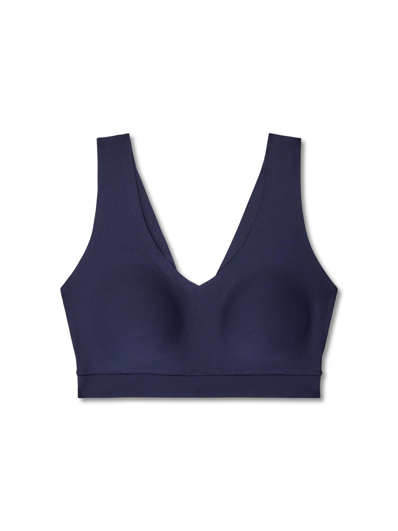 This SoftStretch V Neck Padded Crop Top in Navy by Chantelle offers a comfortable fit with its soft nylon fabric and supportive padded design. The V-neck cut enhances silhouette shape, making it ideal for both casual wear and layering. Its cropped length adds a modern touch while providing gentle support for everyday comfort.