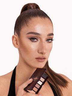 Inspired by 90's supermodels, discover two super star nude satin-matte eye looks in one easy-to-use palette! The Super Nudes Easy Eye Palette incorporates three cool, caramel brown shades and three warm, bronze shades in a velvet matte form blended with oils and waxes for a super emollient, buildable and forgiving texture that delivers long-lasting pigment without creasing or patchiness.