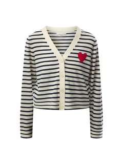 Navy/Cream/True RedNavy/Cream/True Red Pure Merino Heart Breton Cardigan