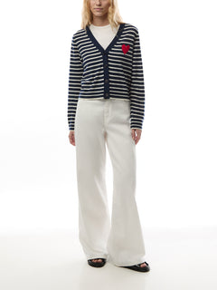 Navy/Cream/True RedNavy/Cream/True Red Pure Merino Heart Breton Cardigan