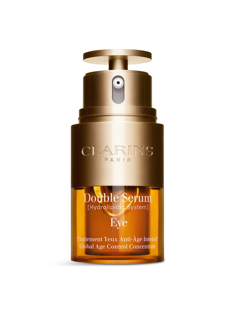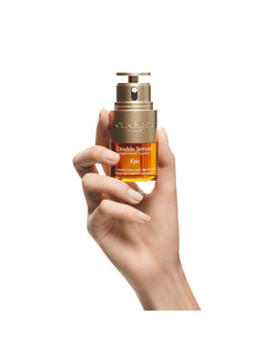 Double Serum Eye is a global age control concentrate that targets all signs of ageing and concerns within the eye contour to preserve the eye area's youthful qualities. The formula, with 96% of ingredients from natural origin, contains Clarins new plant discovery, chervil extract, which helps the skin regain strength and vitality, boosting cell communication.