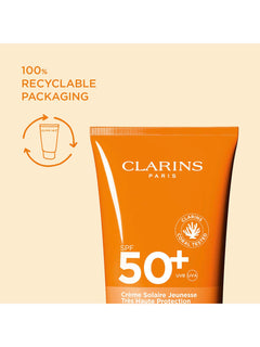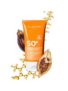 Clarins Sun Care Cream for Body SPF 50+ provides high protection against the harmful effects of the sun, free radicals and blue light. This comfortable formula preserves skins youth without leaving behind any white streaks to reveal a tan. Hydrates the skin with a non-greasy, invisible finish that is suited to all skin tones.
