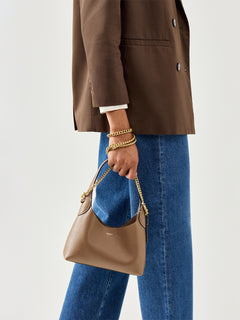 Brooklyn Shoulder Leather Bag 23 Dark Stone