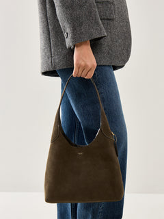 Suede Brooklyn Shoulder Bag 28 Olive