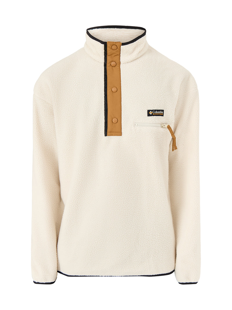 The Helvetia Half Snap Sweatshirt in Chalk offers a blend of comfort and classic style. Featuring a half snap front, it allows easy wear and layered looks. Crafted from soft fabric, this sweatshirt provides warmth and breathable comfort, making it an ideal choice for casual or outdoor wear. Its neutral chalk color pairs well with various outfits, ensuring versatile everyday use.