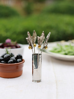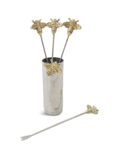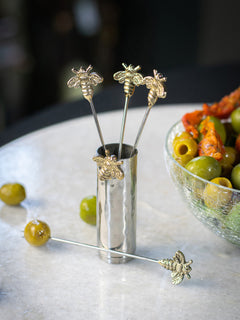 Set of Four Woodland Bee Olive Picks and Holder