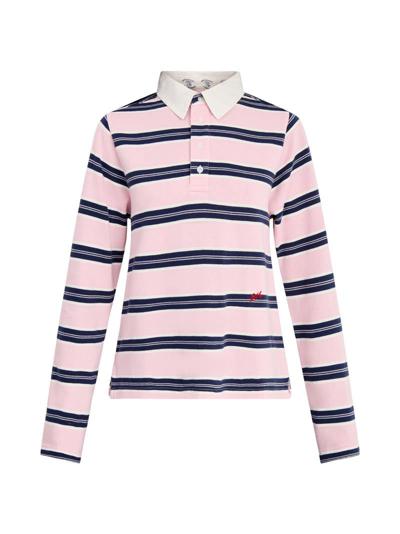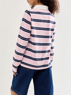 The Cassia Shrunken Rugby Pink Stripe offers a stylish take on classic rugby design with a modern, fitted silhouette. Featuring bold pink stripes, this piece combines sporty appeal with contemporary fashion, making it a versatile addition to your wardrobe for casual and active wear.
