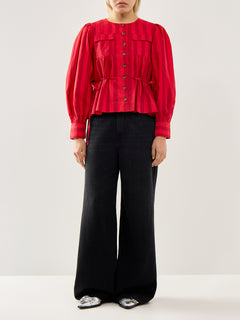 Damson Madder’s Charlize Blouse in Red Stripe brings a playful take on shirting. With a relaxed fit and vibrant pattern, it pairs comfort with standout detail. A modern update for everyday wardrobes.
