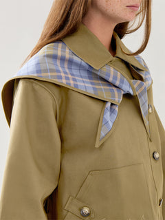 This Jerry Crop Trench Coat in olive is crafted from organic cotton, offering a sustainable yet stylish outerwear option. Its cropped design delivers a modern silhouette, while the breathable material ensures comfort throughout the day. Perfect for layering, this coat combines eco-friendly fabric with practical wearability.